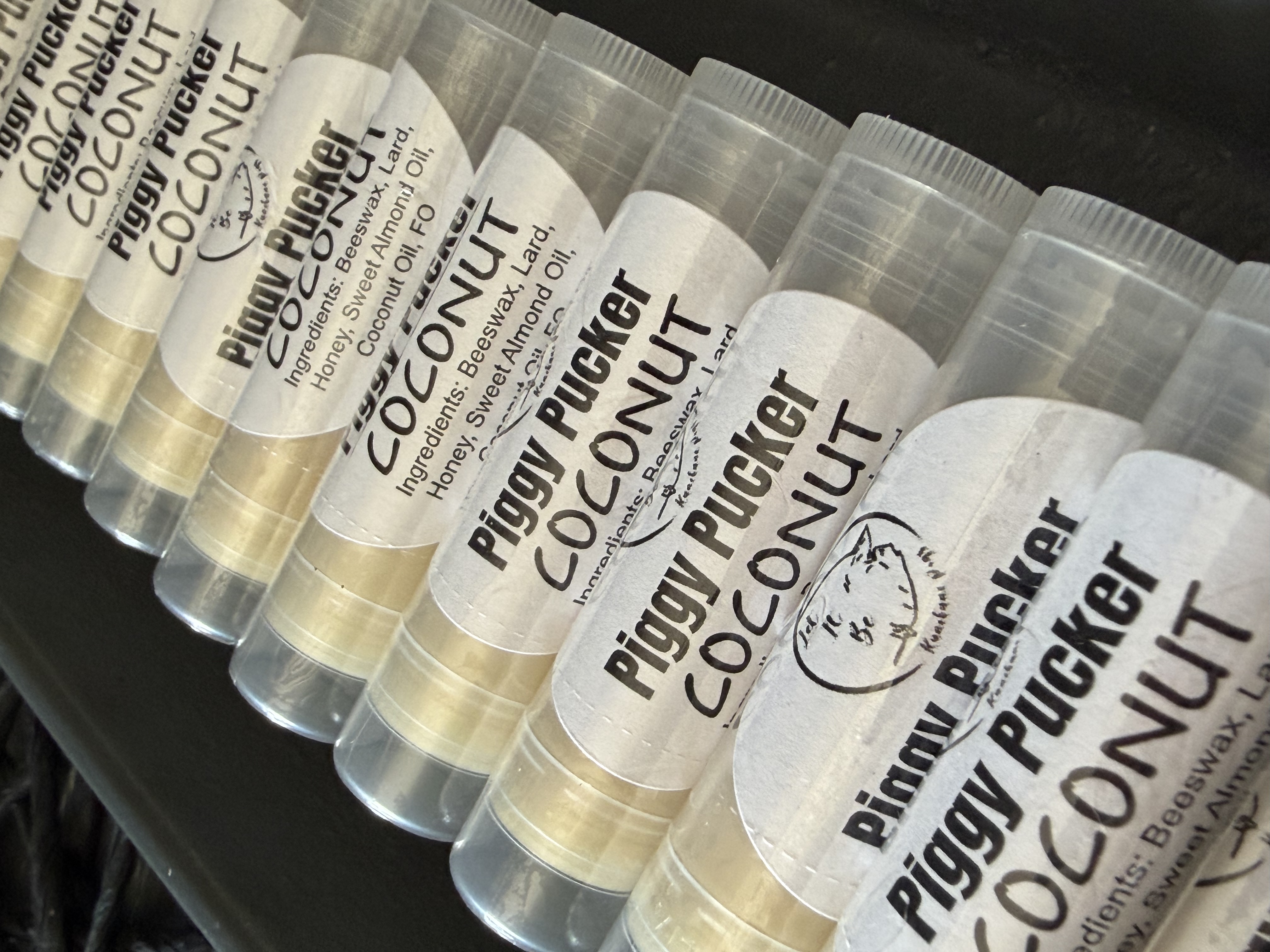 Imagine the soothing sensation of instant relief and moisture. Our Praise the Lard Coconut Piggy Pucker is crafted with lard, coconut oil, sweet almond oil, honey, and beeswax. These all-natural ingredients work together to lock in hydration, leaving your lips feeling soft, supple, and oh-so-kissable. Whether you're lounging at the beach, hiking in the mountains, or simply going about your day, this piggy pucker is your go-to for all-day comfort.