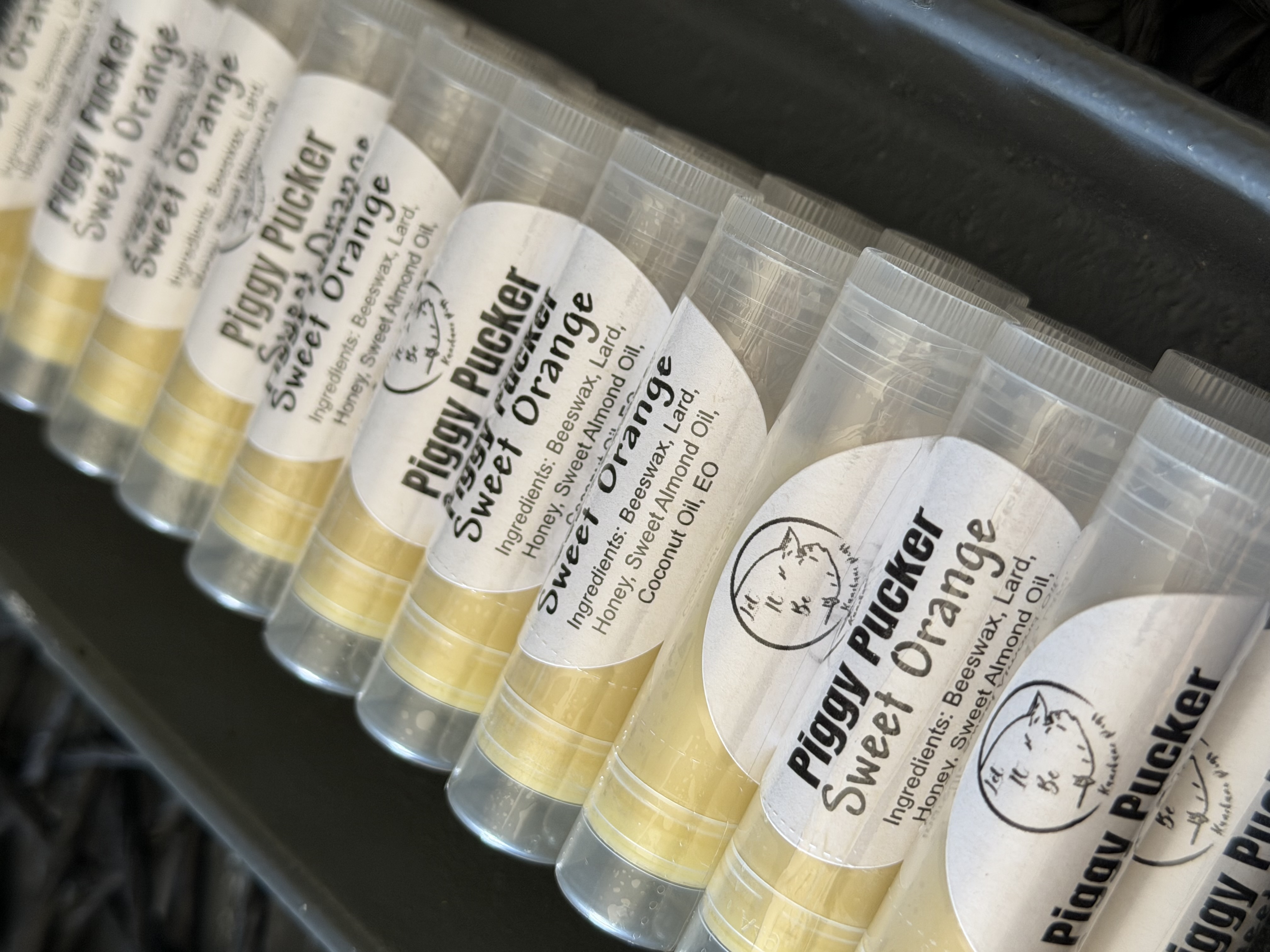 What sets our Praise the Lard Piggy Pucker Sweet Orange Lip Balm apart is its unique blend of natural ingredients. We’ve carefully crafted this balm with nourishing oils that hydrate and soothe, ensuring your lips stay in tip-top shape. Say goodbye to chapped, dry lips and hello to a luscious, healthy pout!